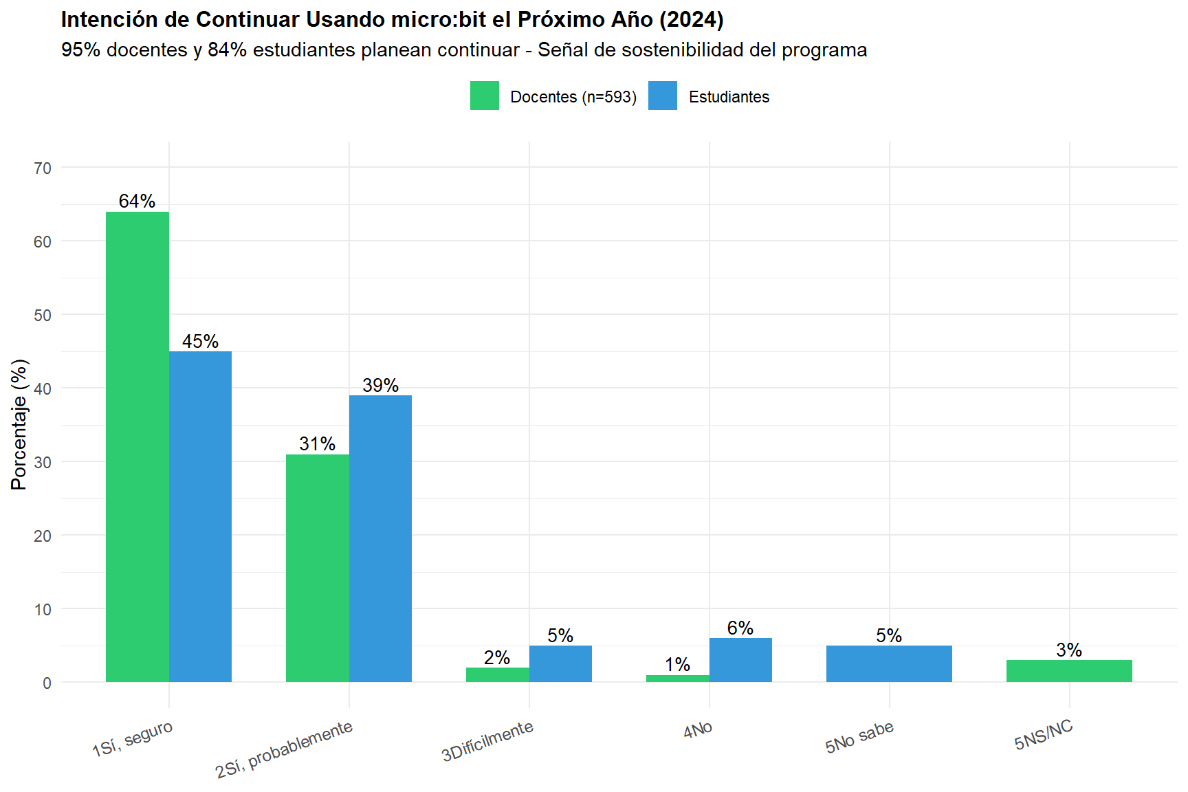 Profundidad: ¿El programa genera cambios en la práctica pedagógica o solo una adopción superficial? Usar micro:bit una vez por año como “actividad especial” no es apropiación profunda.