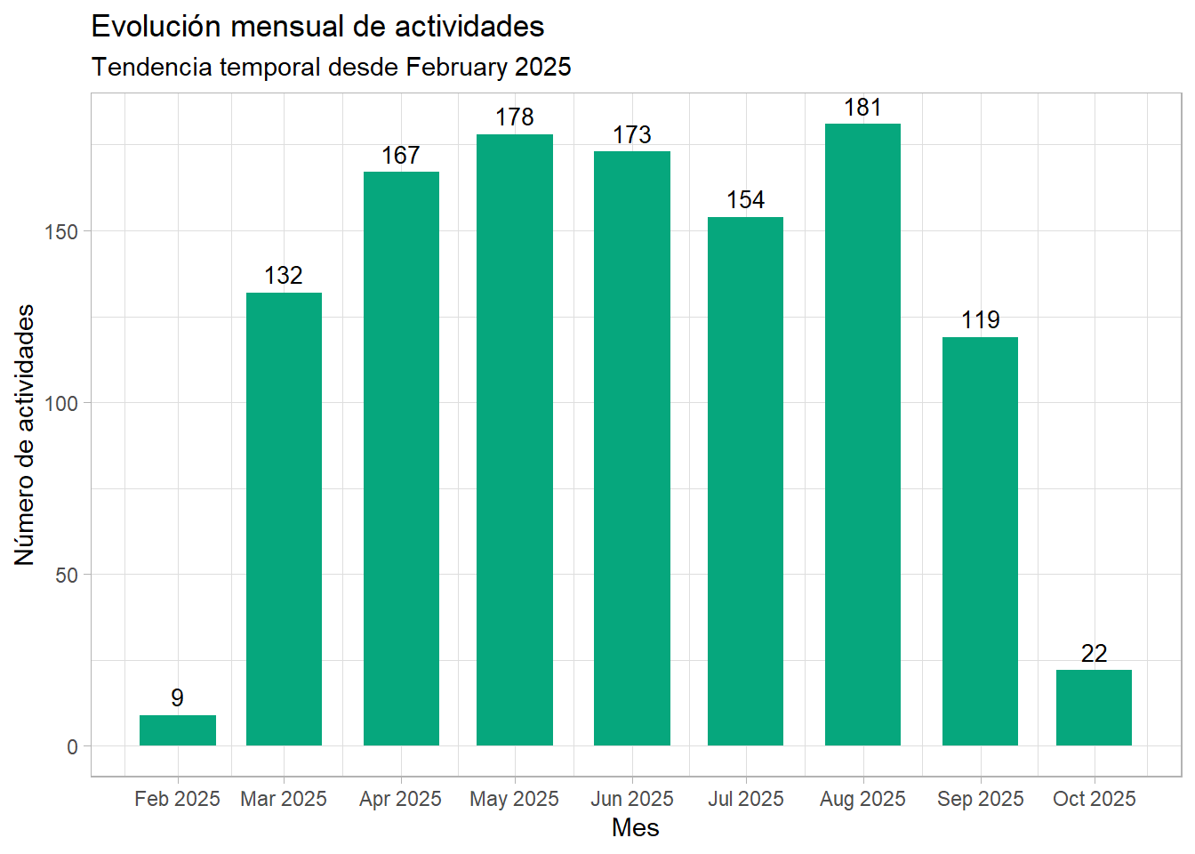 y = "Número de actividades"